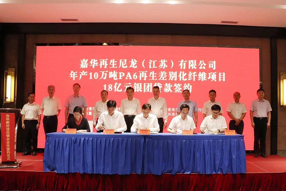 7月21日,在江蘇省淮安市,臺(tái)華新材與中國(guó)銀行、工商銀行、建設(shè)銀行、民生銀行等7家金融機(jī)構(gòu)組成的銀團(tuán)簽訂貸款協(xié)議書,總授信金額28億元,支持臺(tái)華新材綠色多功能錦綸新材料一體化項(xiàng)目(一期)的建設(shè)。