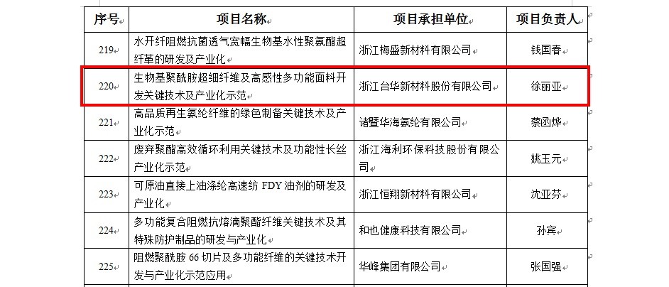 近日,2023年度省“尖兵”“領(lǐng)雁”研發(fā)攻關(guān)計(jì)劃項(xiàng)目資金下發(fā),臺(tái)華新材預(yù)計(jì)獲省科技專項(xiàng)資金補(bǔ)助128萬(wàn)元。據(jù)悉,臺(tái)華新材攻關(guān)“生物基聚酰胺超細(xì)纖維及高感性多功能面料開發(fā)關(guān)鍵技術(shù)及產(chǎn)業(yè)化示范項(xiàng)目” 入選省級(jí)“領(lǐng)雁”計(jì)劃。