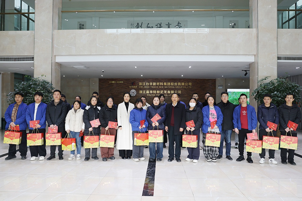 2月5日,秀洲區慈善總會會長沈鳳興帶隊來臺華慰問一線困難職工,并將慰問金和春節禮包送到了職工手中。