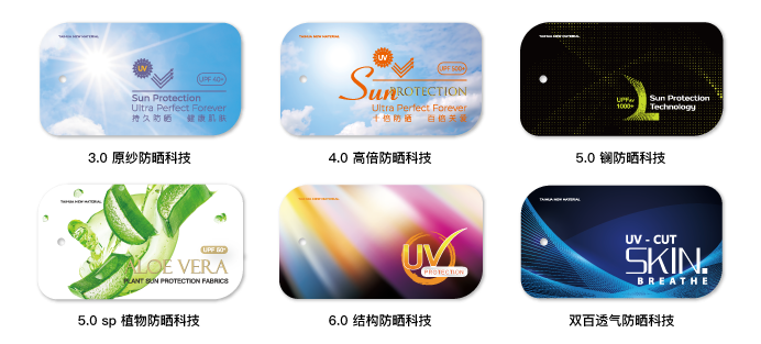 防曬科技的創(chuàng)新技術(shù)已從1.0「涂層加工」進(jìn)階至6.0「原紗構(gòu)造+組織」,防曬性能極大提升的同時(shí),面料更加輕薄通透,還可復(fù)合多種功能性于一身,打造全方位呵護(hù)效果。